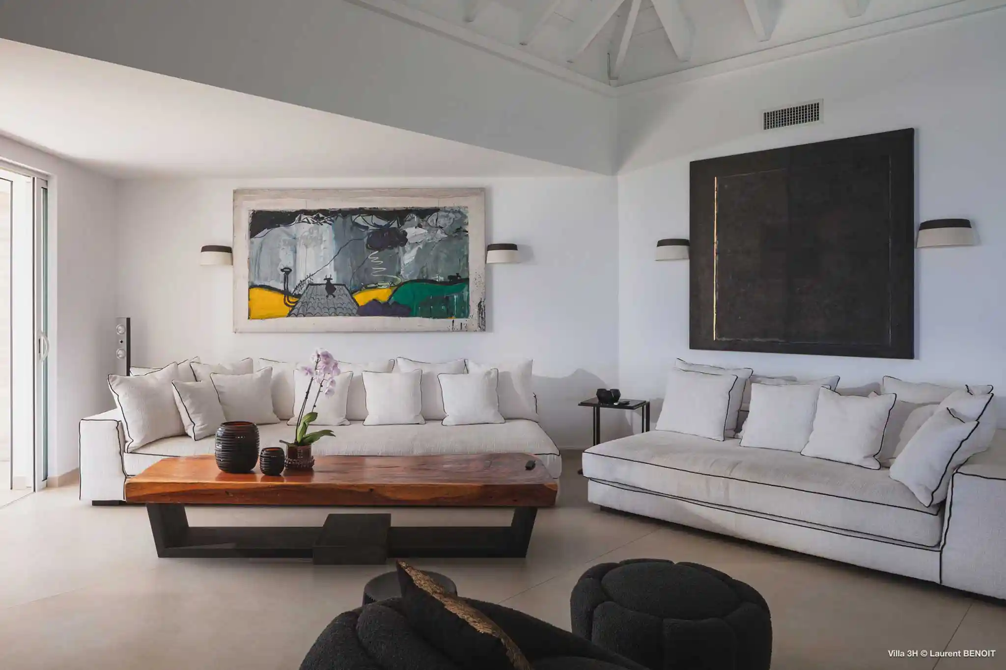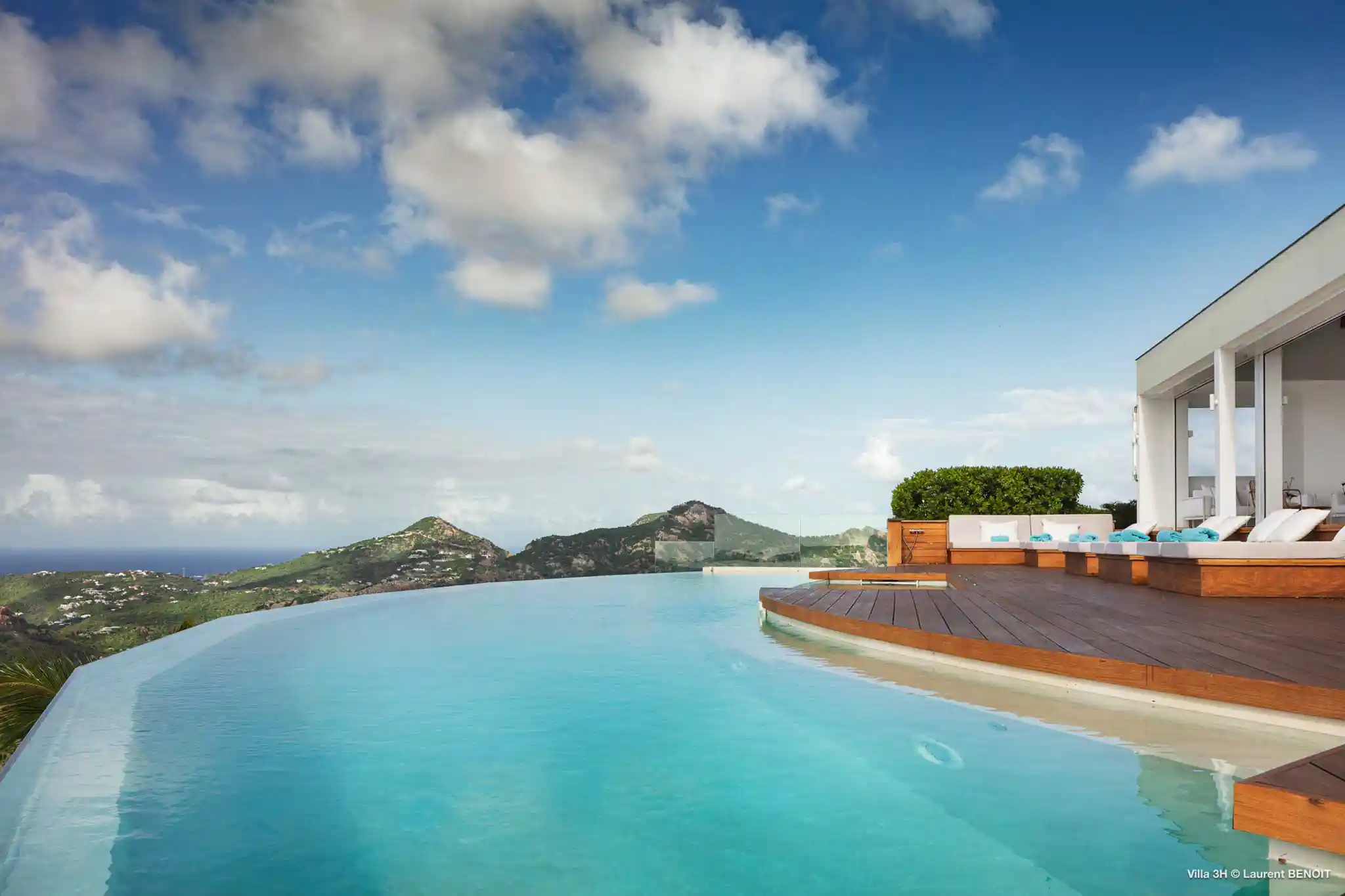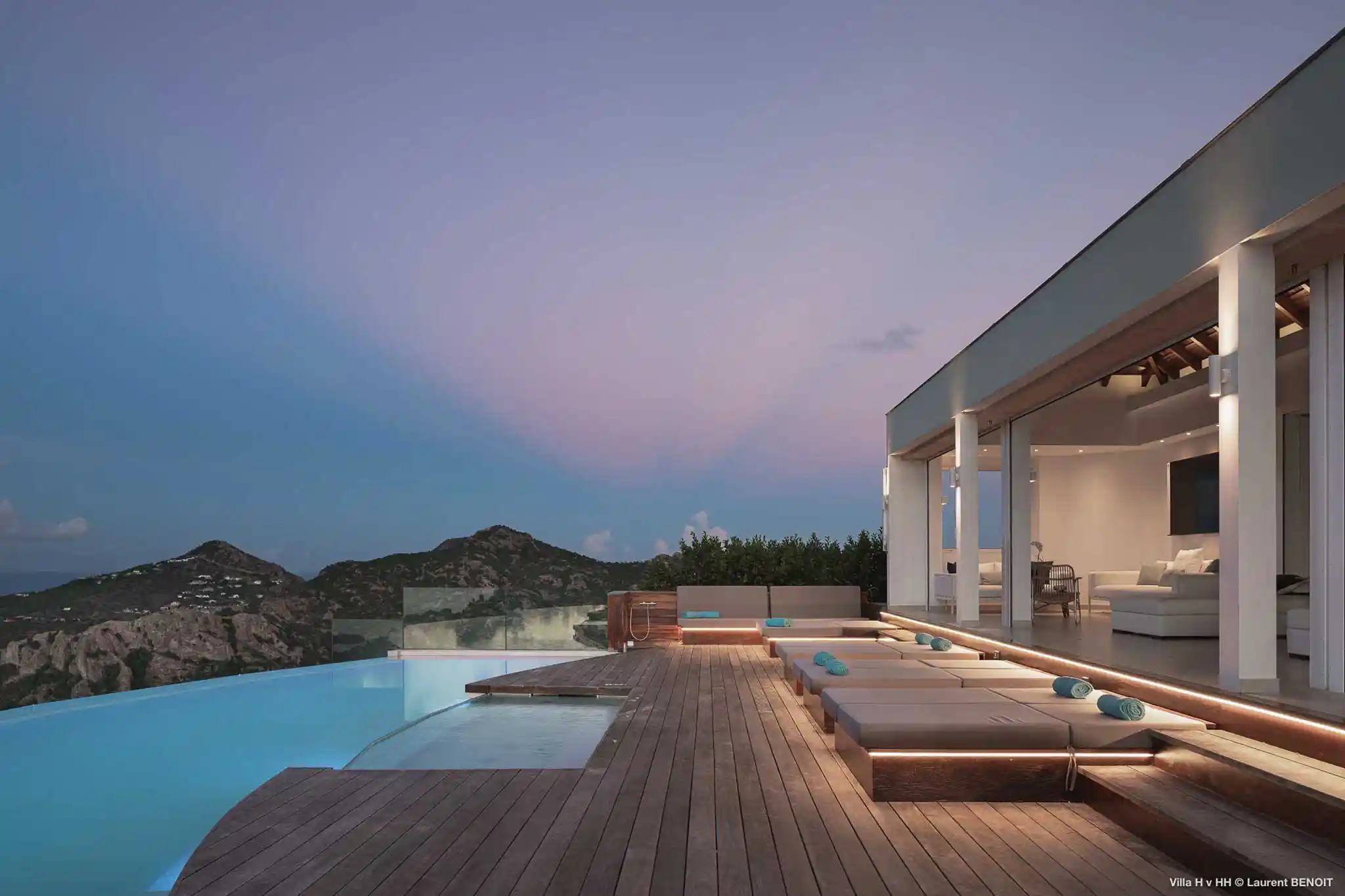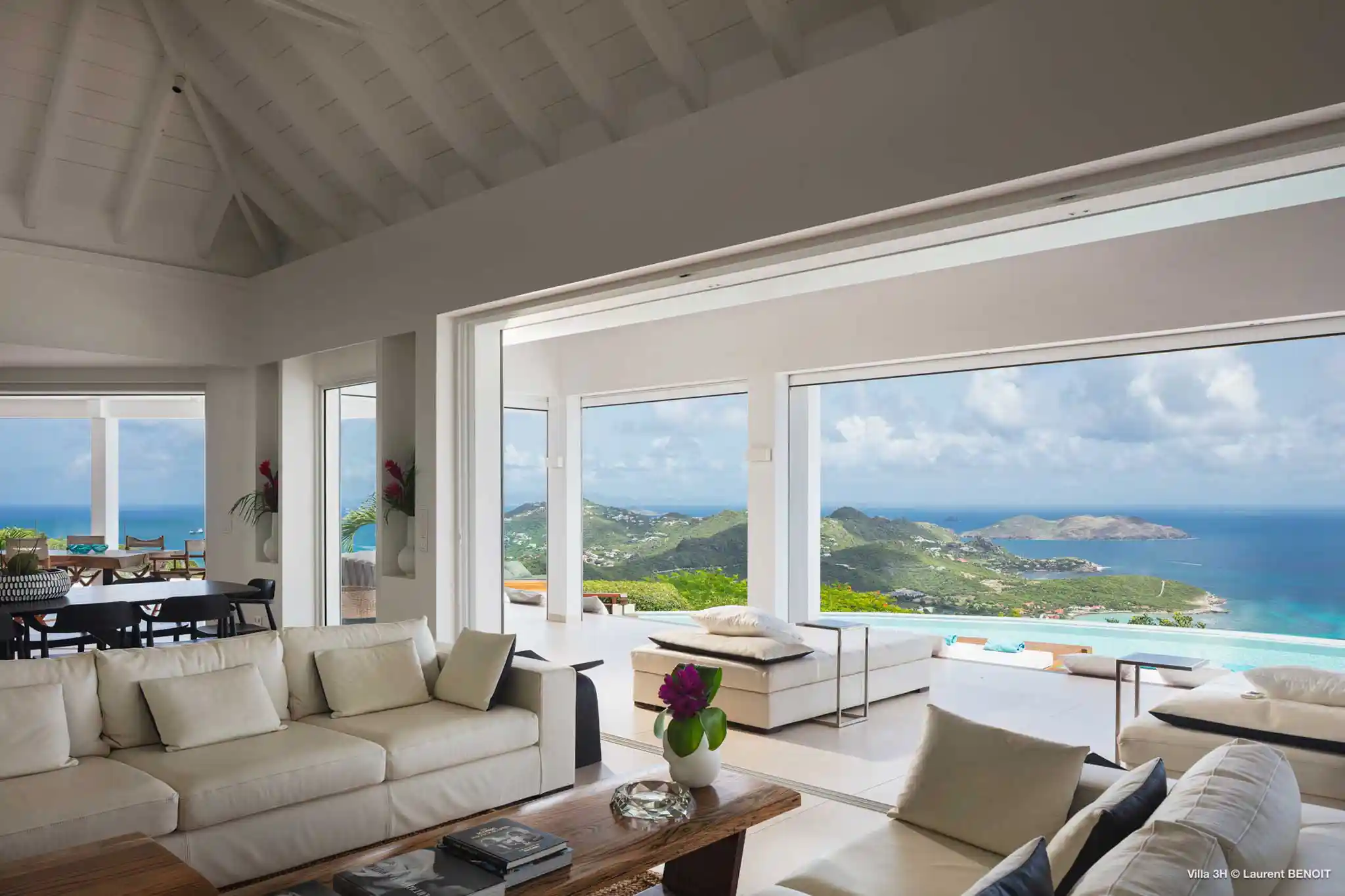 Villa3H is a modern hillside retreat overlooking St-Jean Bay. It features 9bedrooms, and was designed for groups who value views, style, and privacy.
