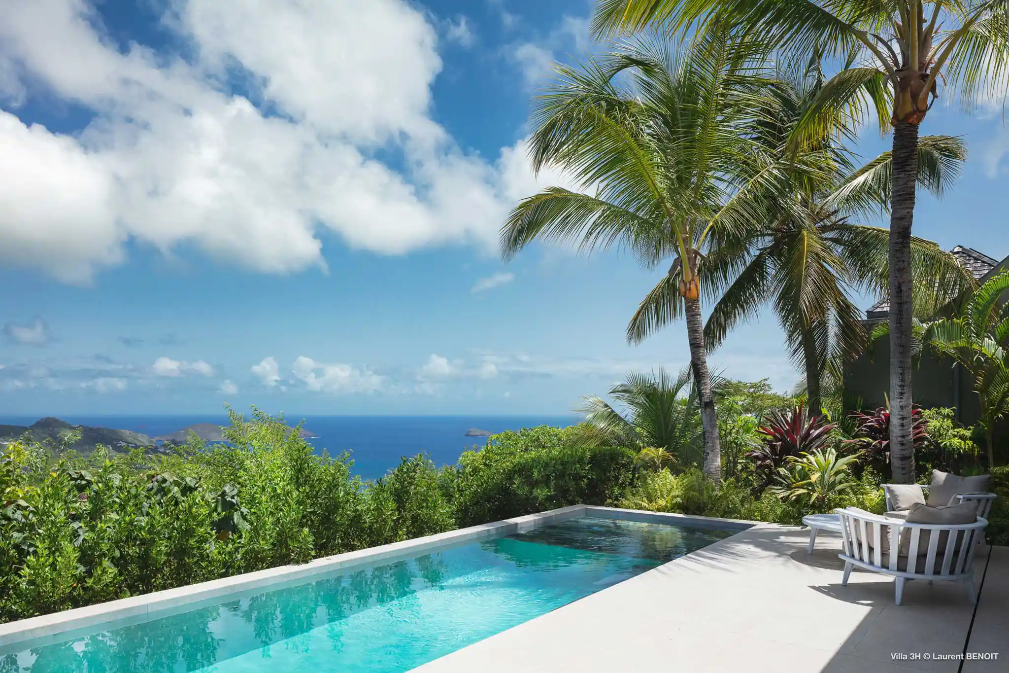 Villa 3H is located on the hillside above the village of St-Jean, offering an elevated view of St Jean bay with quick access to its beach clubs and boutiques.