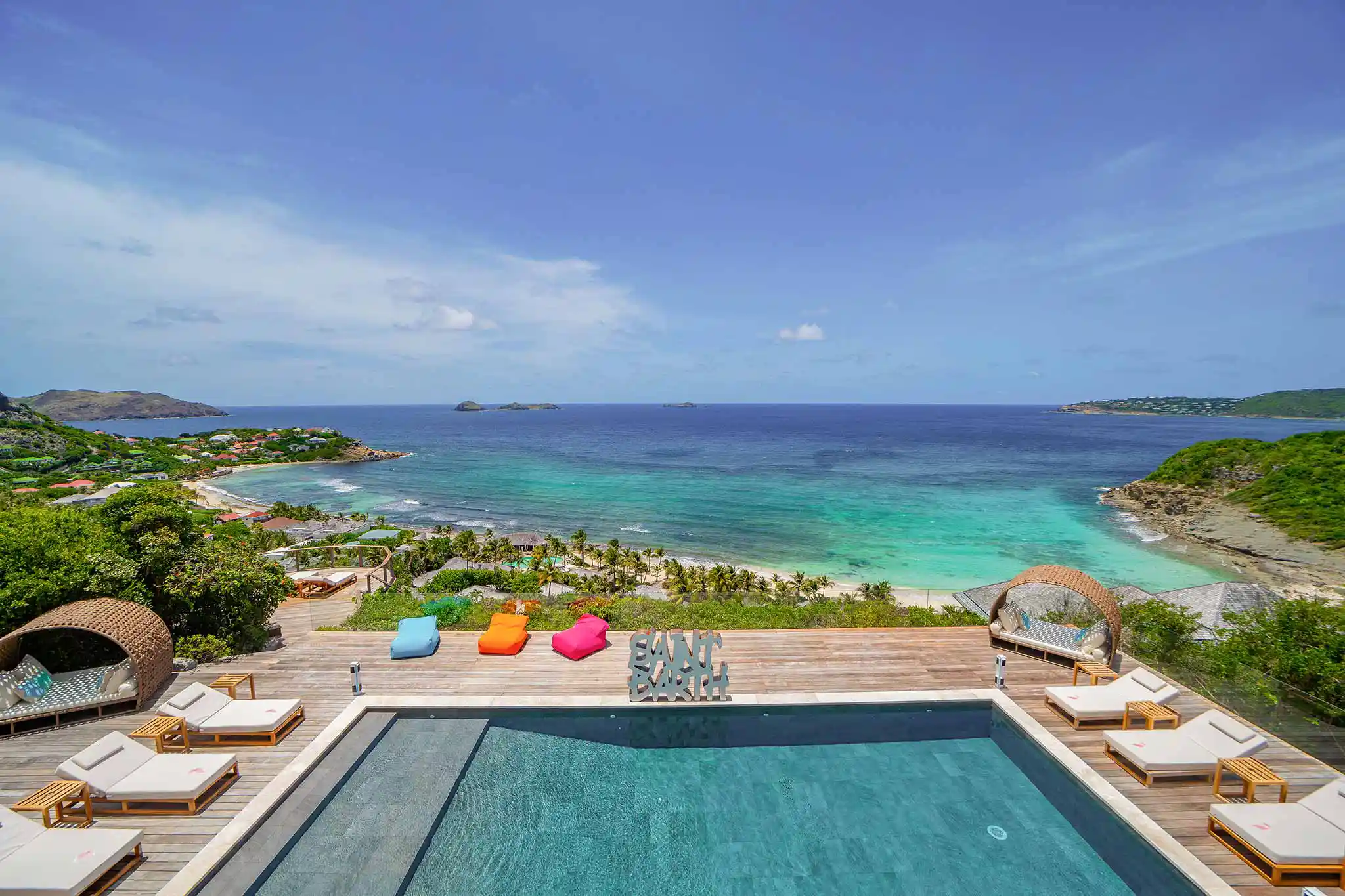 Villa Cœur de Pirate is a luxurious retreat in Anse des Cayes with sweeping sea views. It features six suites, a heated pool, and spa-level indulgence throughout.