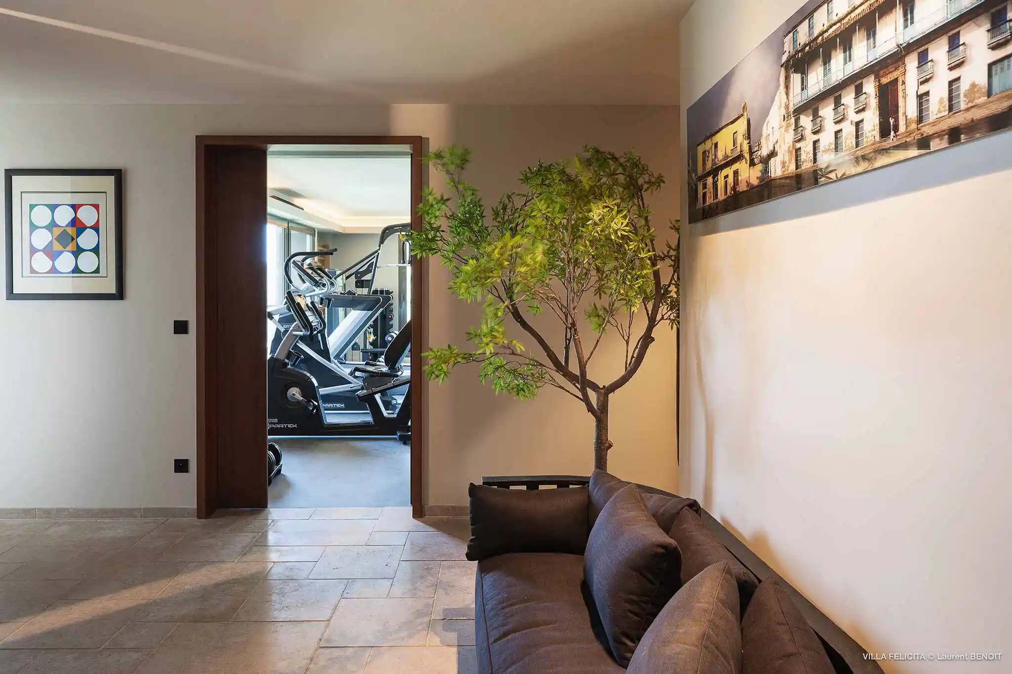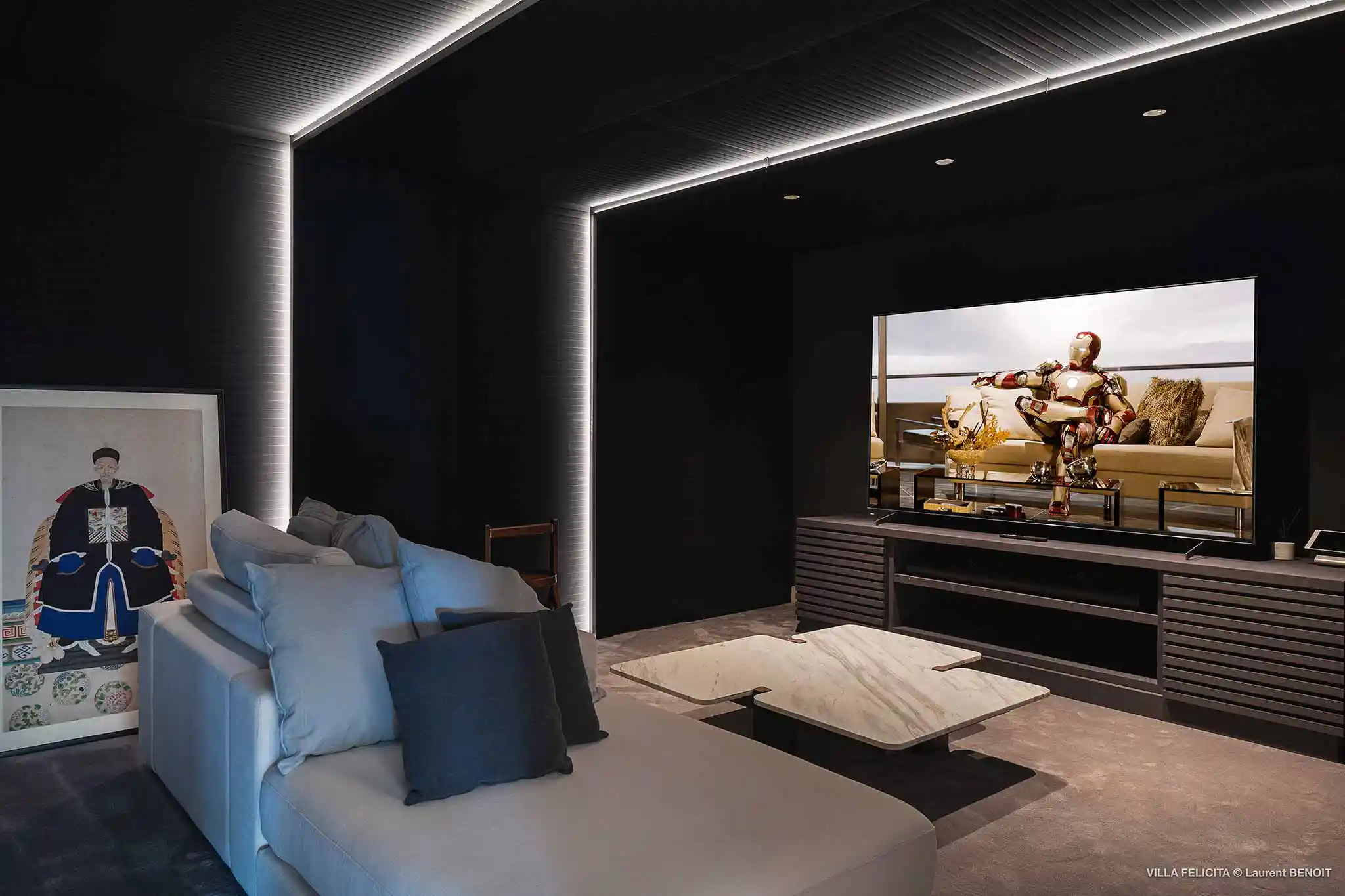 Villa Felicita feels like a modern architectural statement—sleek, airy, and undeniably polished. The living and dining spaces are designed for real gatherings: long meals, unhurried conversations, and the occasional “one more movie” night (you’ll see why).