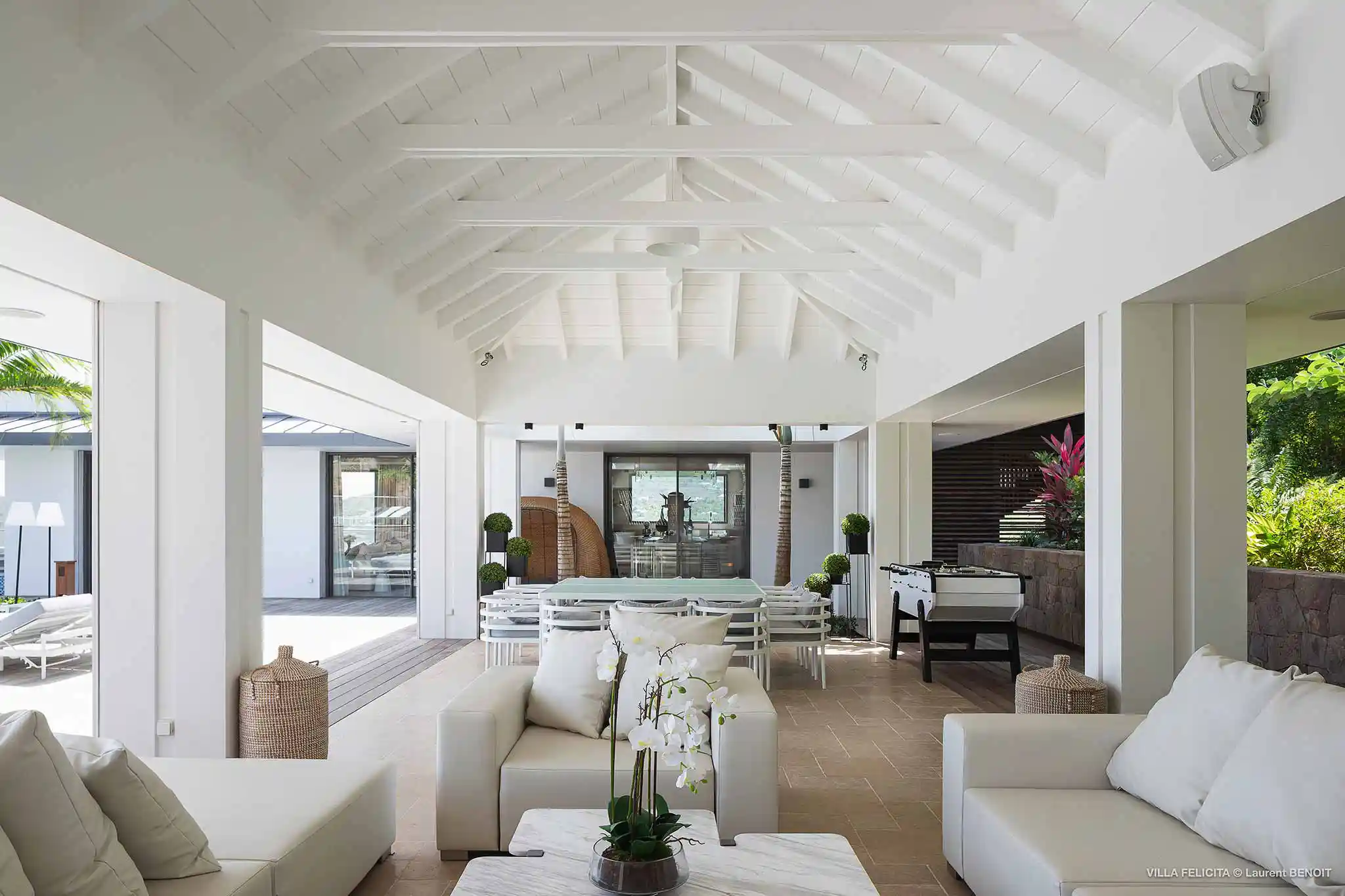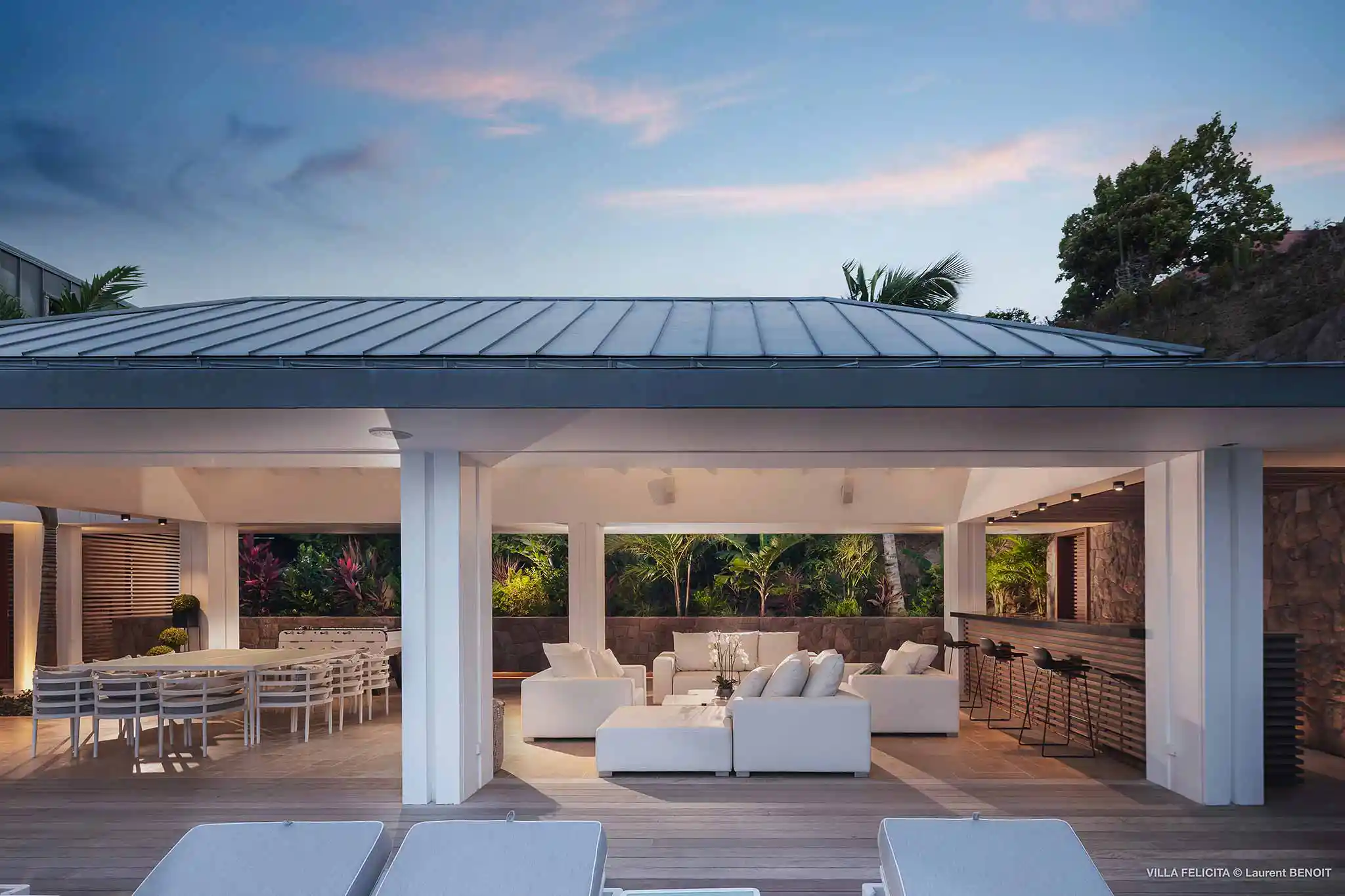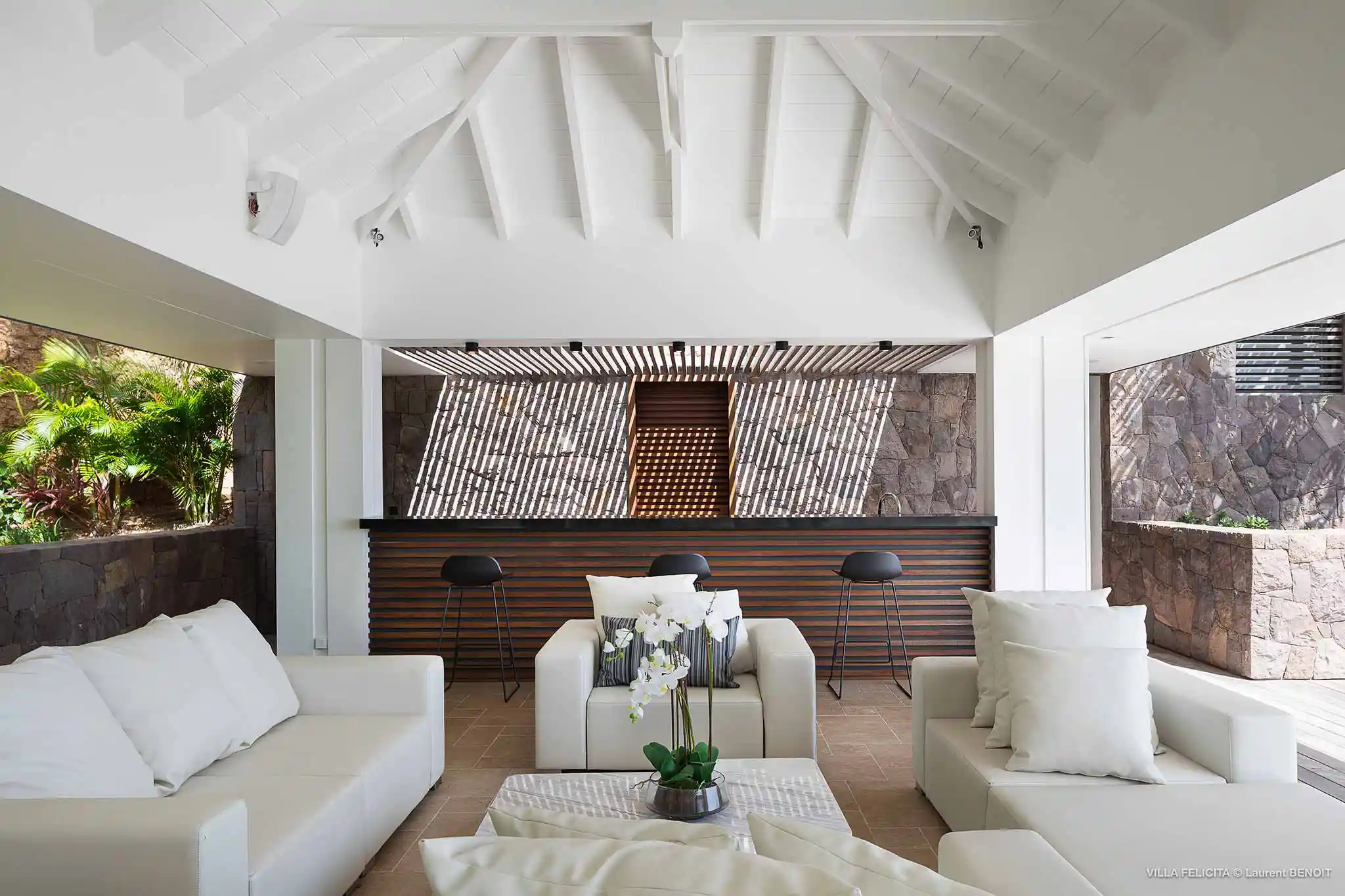 Villa Felicita is located in Lorient, and looks out over Lorient Bay towards Pointe Milou. It’s just a short drive to both Lorient beach and St Jean beach, and the restaurants and shops in each area.