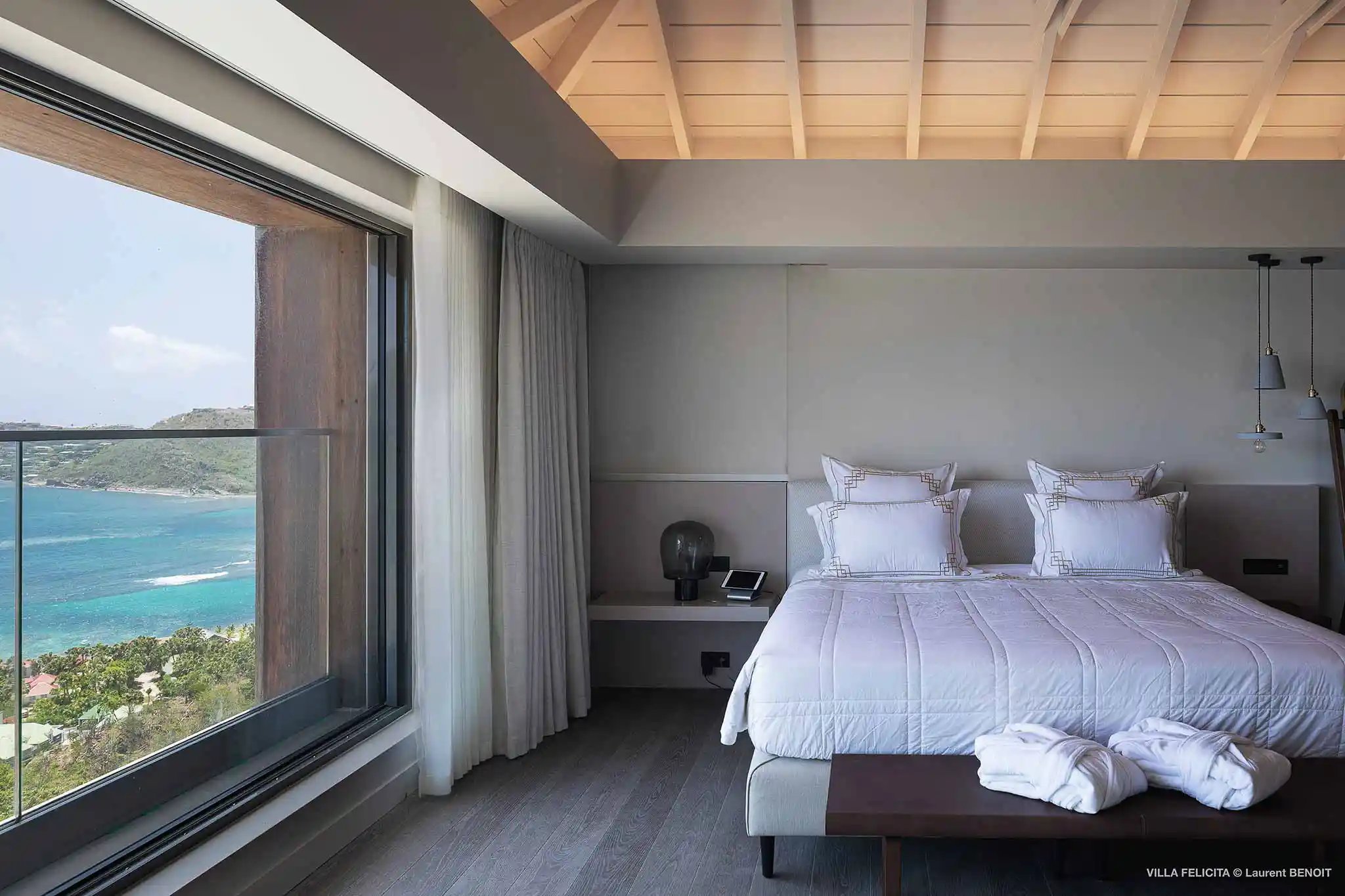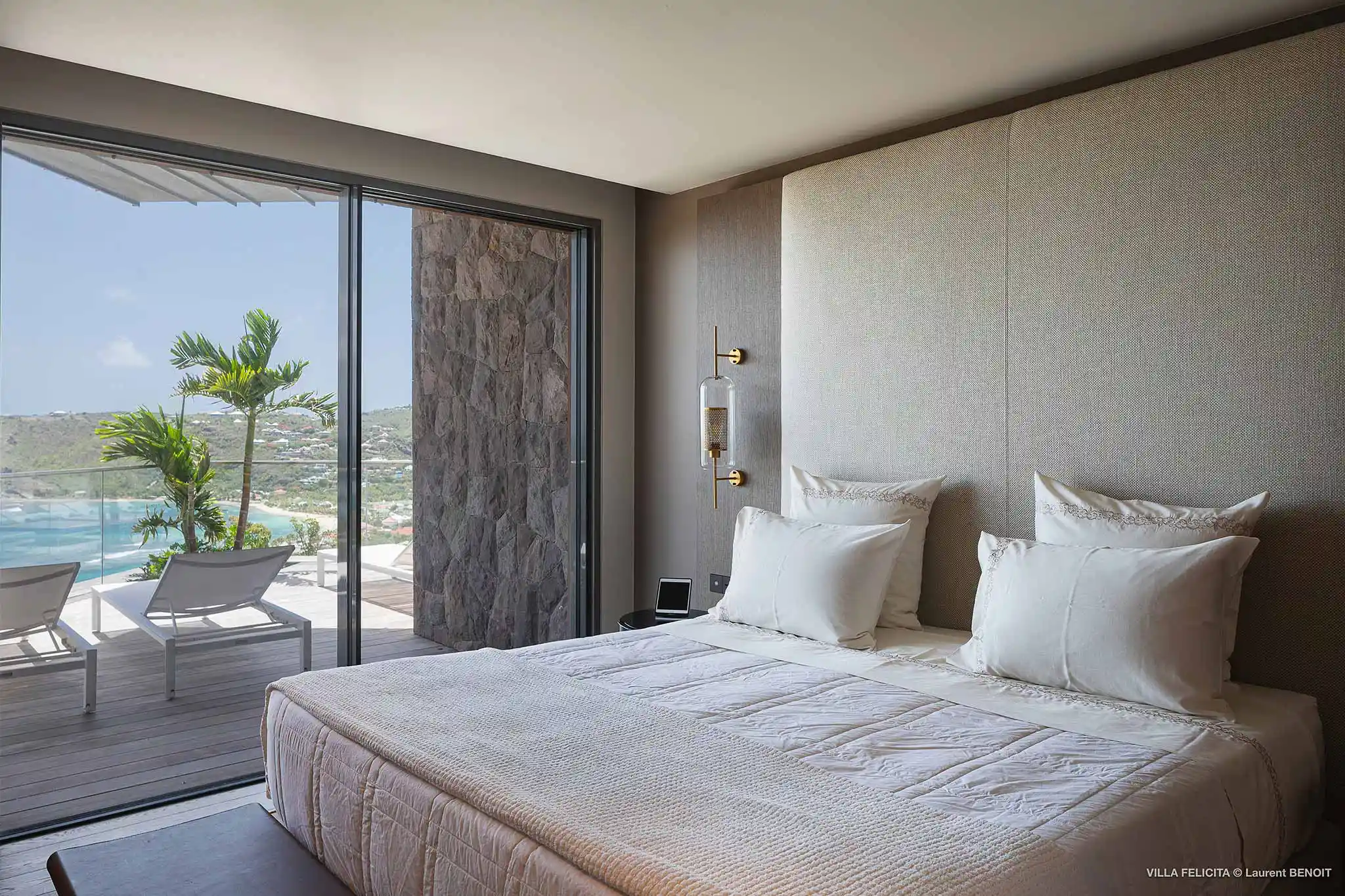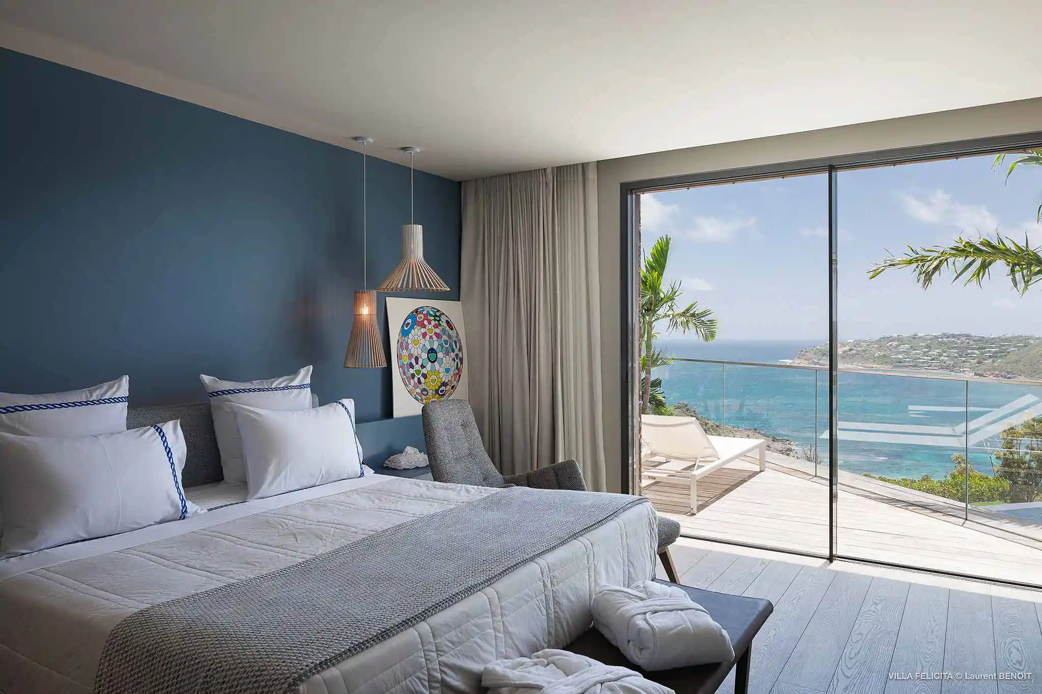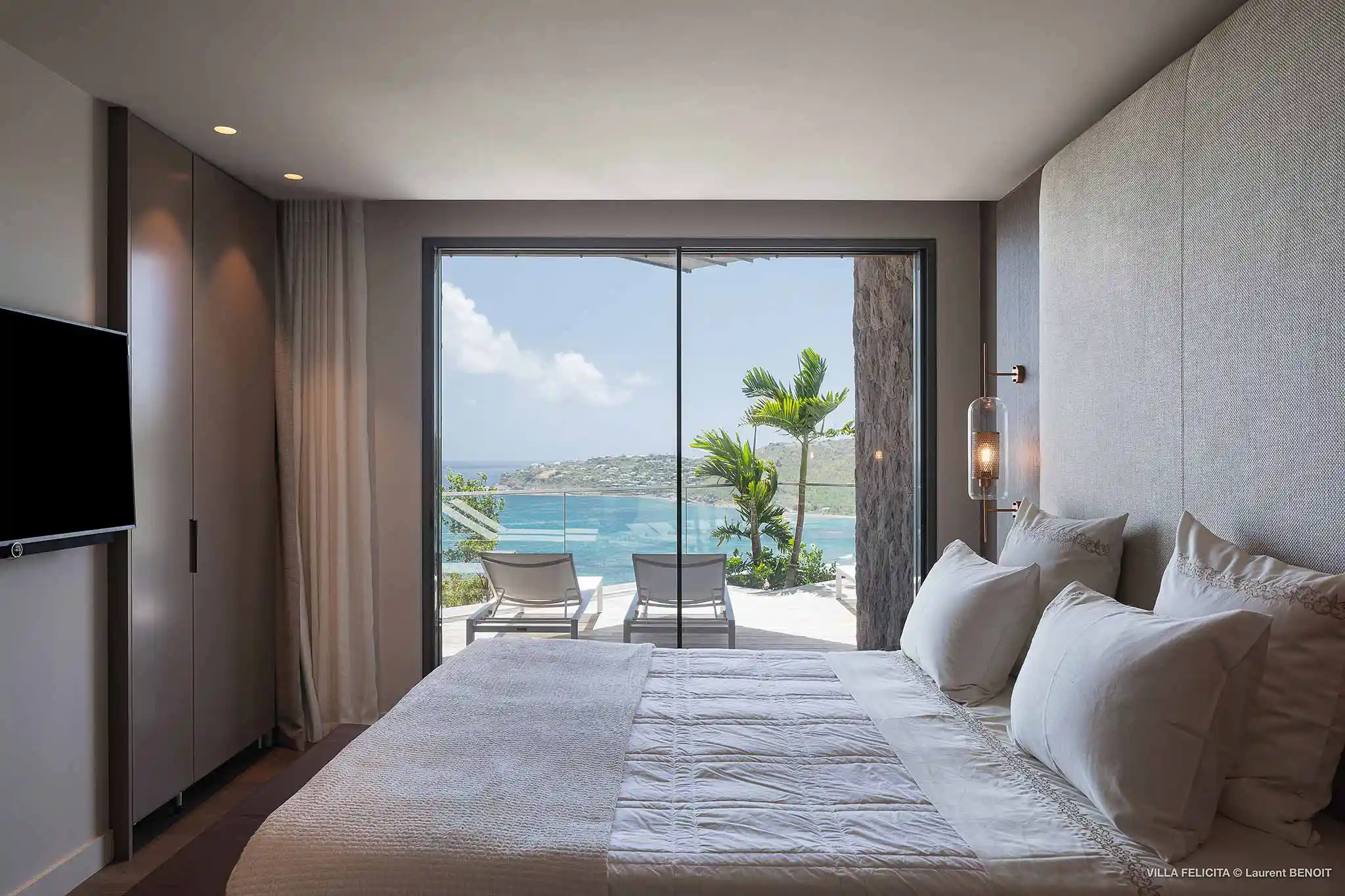 Villa Felicita offers seven air-conditioned bedrooms spread across several buildings and three levels, which is exactly the kind of layout that keeps a group happy. Each bedroom has an ensuite bathroom, and most open to magnificent ocean views; the seventh bedroom is especially handy for staff or a teen who wants a bit of independence.