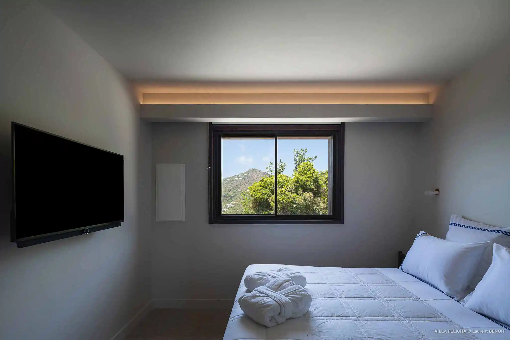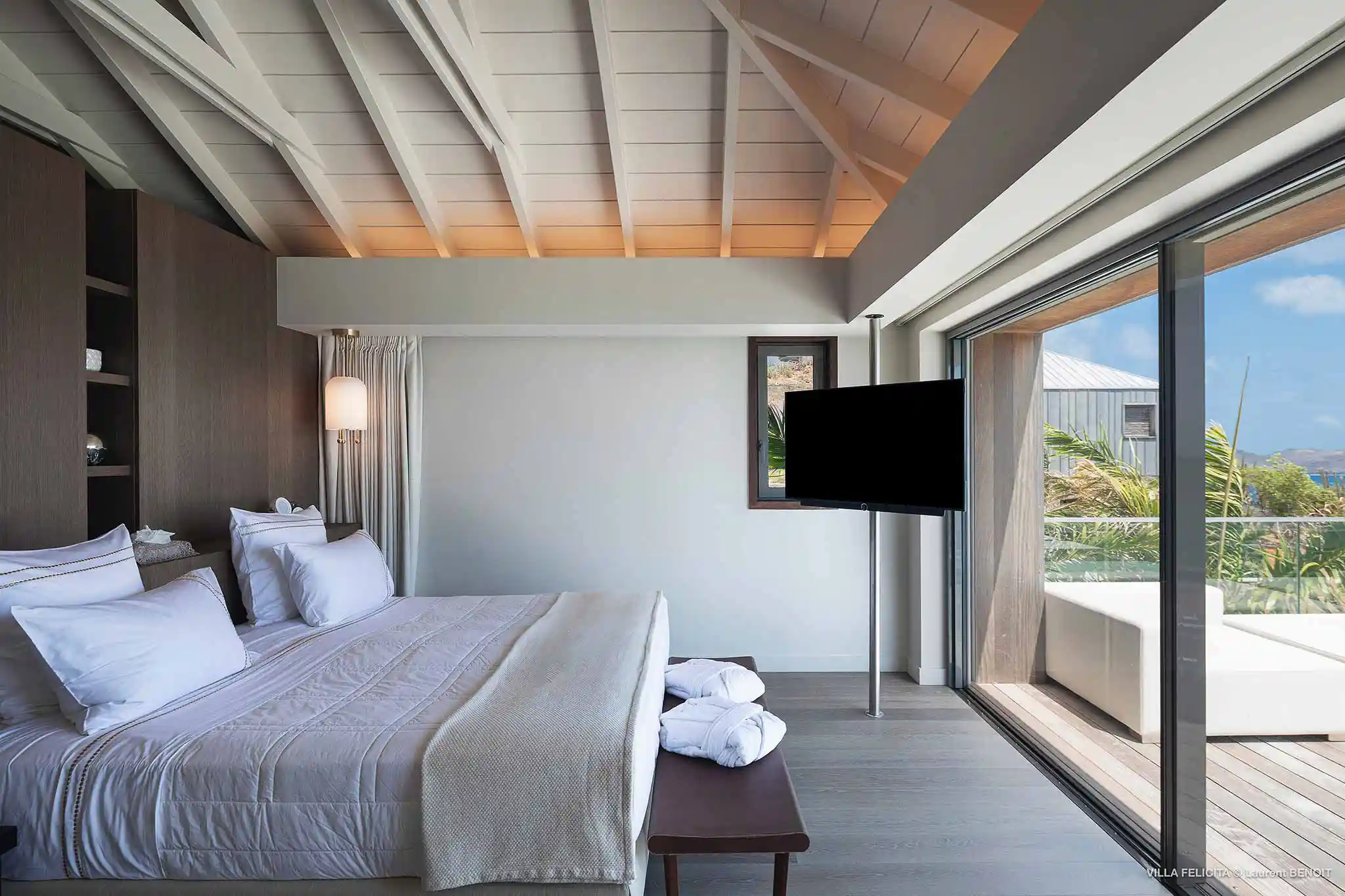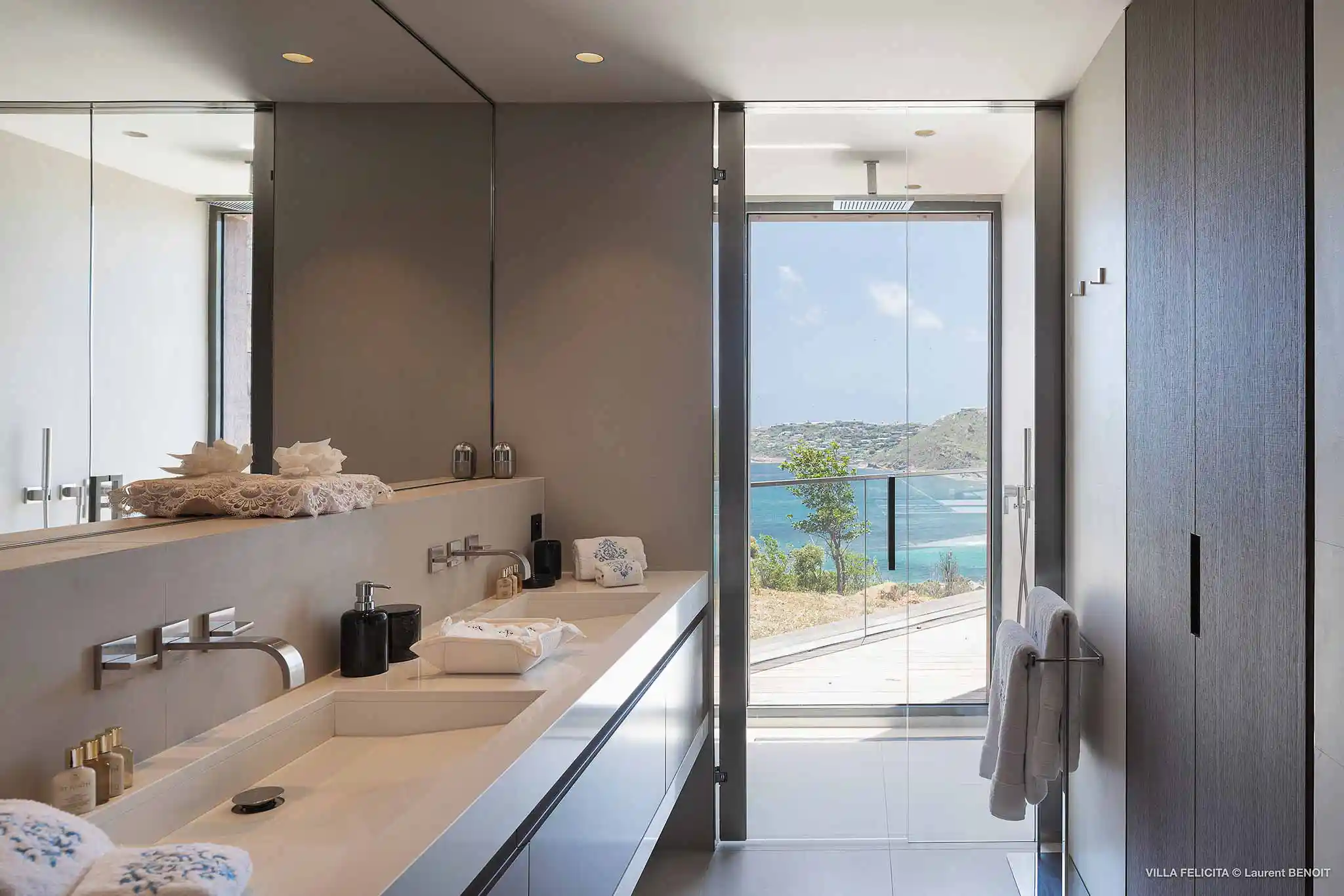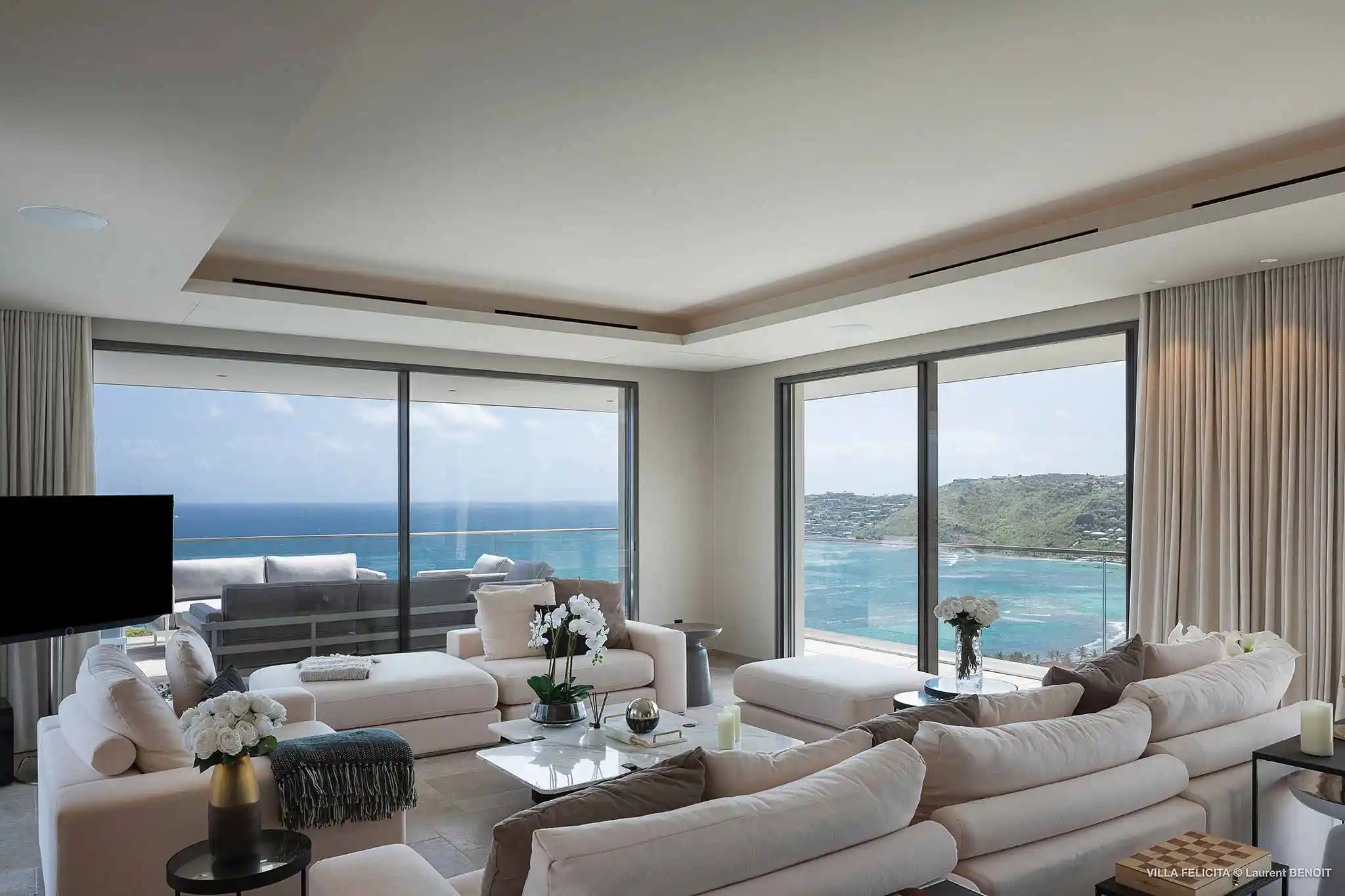 Villa Felicita offers seven air-conditioned bedrooms spread across several buildings and three levels, which is exactly the kind of layout that keeps a group happy. Each bedroom has an ensuite bathroom, and most open to magnificent ocean views; the seventh bedroom is especially handy for staff or a teen who wants a bit of independence.